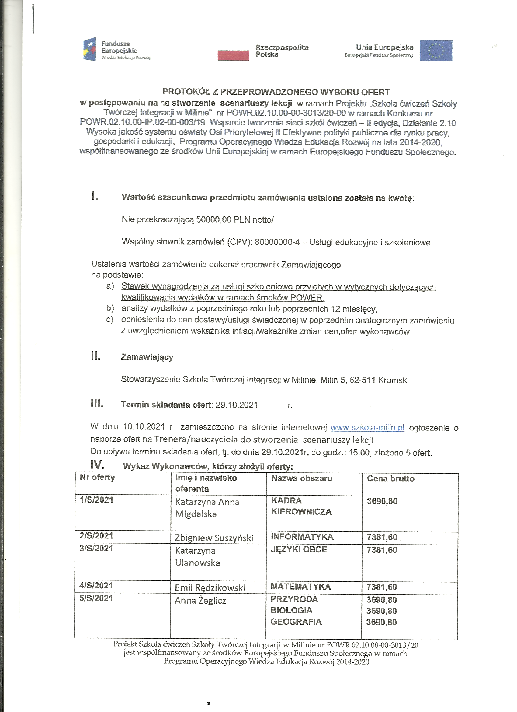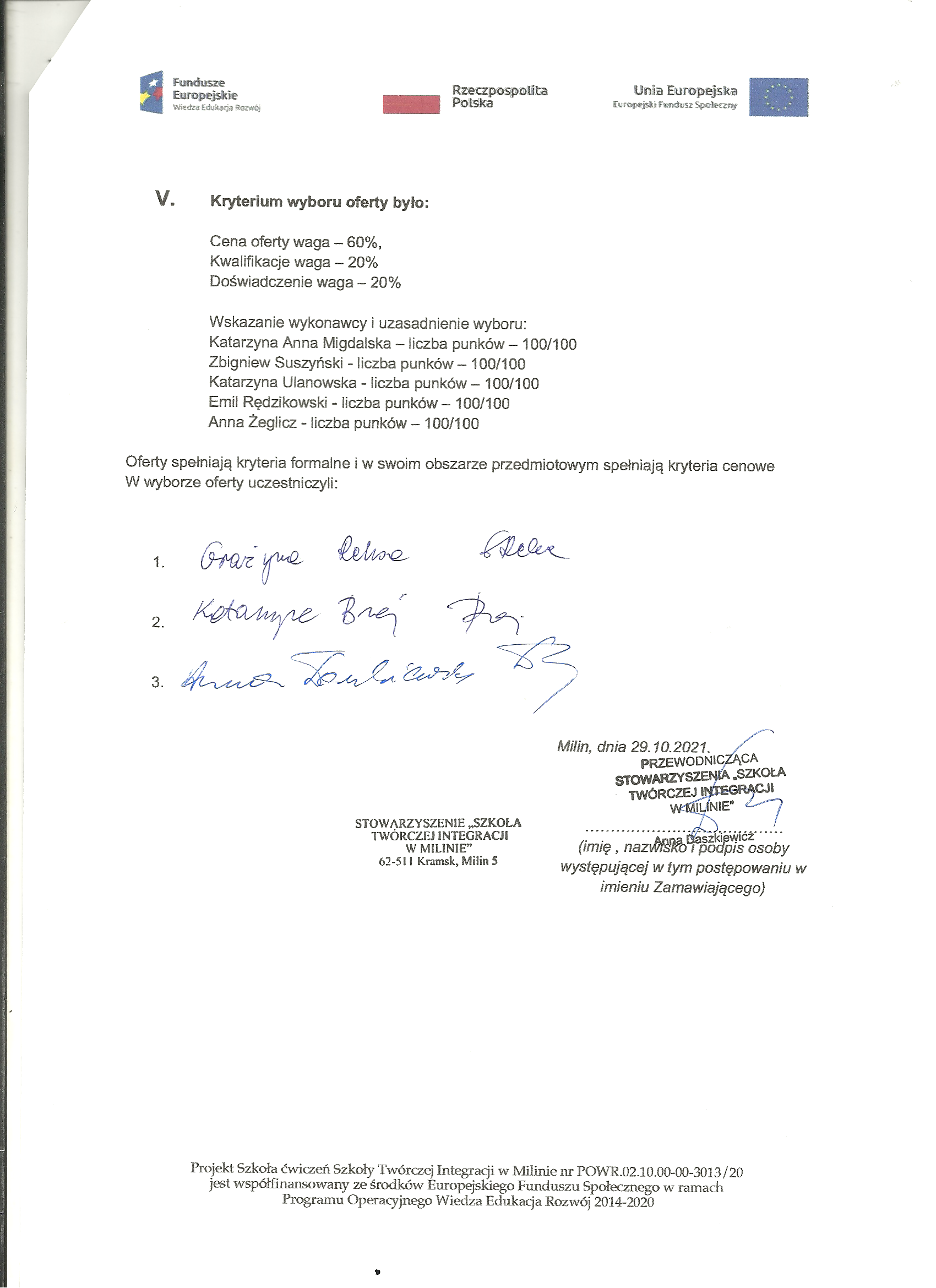 Twórczej Integracji w Milinie” nr POWR.02.10.00-00-3013/20, realizowanego w ramach